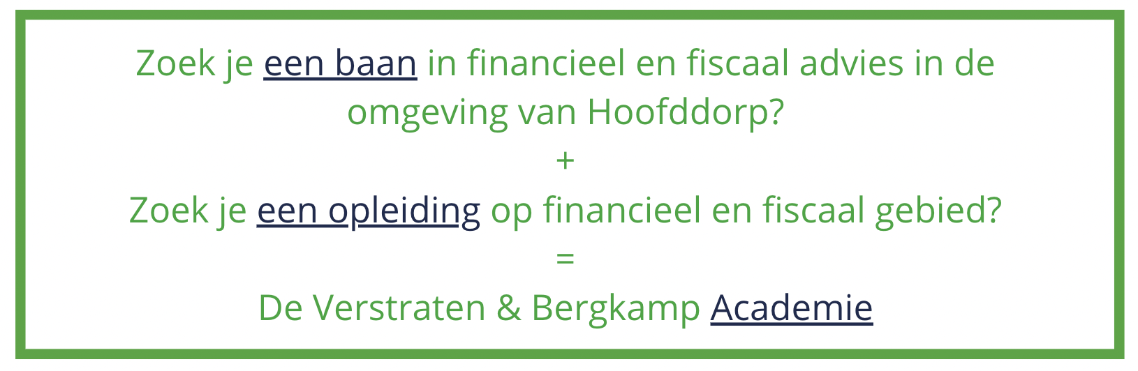 Onze organisatie is volop in beweging. Er is aandacht en ruimte voor inbreng van ieders talenten, competenties en persoonlijke ontwikkeling. De optelsom daarvan is de professionele ontwikkeling van ons als geheel. We zijn daarom op zoek naar diegenen die hun MBO, HAVO, of VWO hebben afgerond en op zoek zijn naar een HBO opleiding of Universitaire studie op financieel gebied. We zijn op zoek naar studenten ambitie, initiatief, leervermogen en onafhankelijkheid, die kunnen plannen en organiseren, samenwerken, luisteren en presteren.